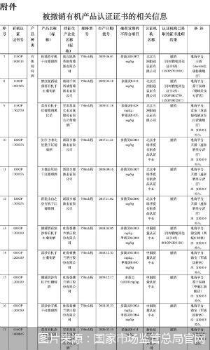 据通告显示,对抽查发现严重不符合(违规使用禁用物质等情况)被撤销认证证书(详见附件)的相关产品,认证机构5年内不得受理该企业及其生产基地、加工场所的有机产品认证委托。